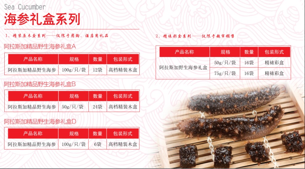 目前世界上出產(chǎn)真正野生海參的國家很少,從野生海參品質(zhì)上來說,阿拉斯加海域出產(chǎn)的野生海參為最佳,所含營養(yǎng)也最為豐富,其中膠原蛋白、海參皂甙、海參粘多糖等營養(yǎng)成分在已發(fā)現(xiàn)的所有海參品種中最高,是其它海參品種無法比擬的。